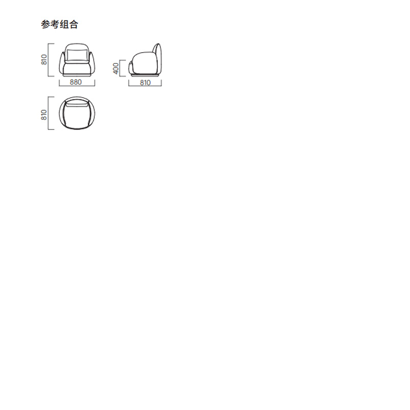整體為面料包製,框架為進口松木,底座為白蠟木實木開放漆黑橡色,內置金屬轉盤導軌。