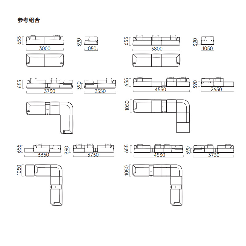 沙發坐包為面料,靠背為皮質包製,整體框架為白蠟木實木開放漆灰橡色。