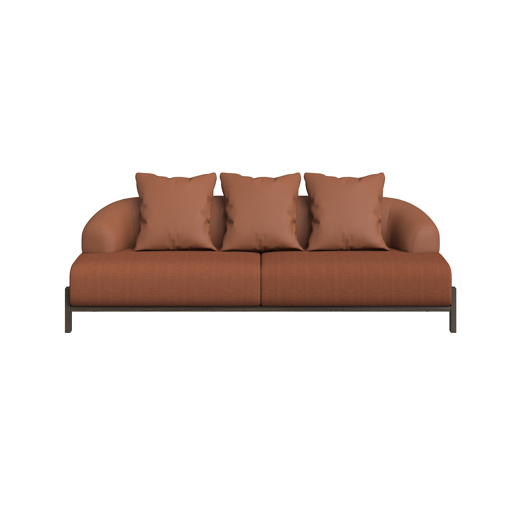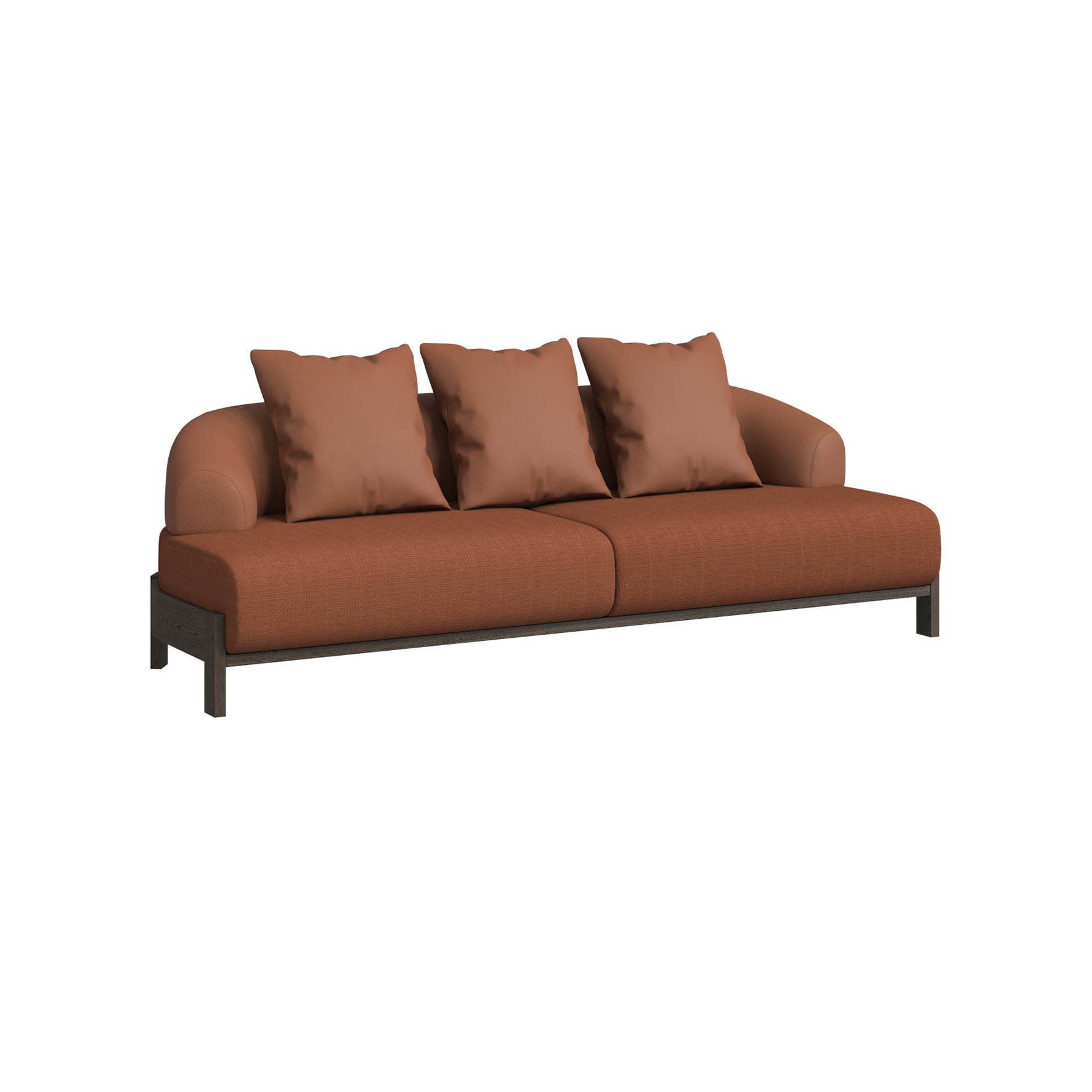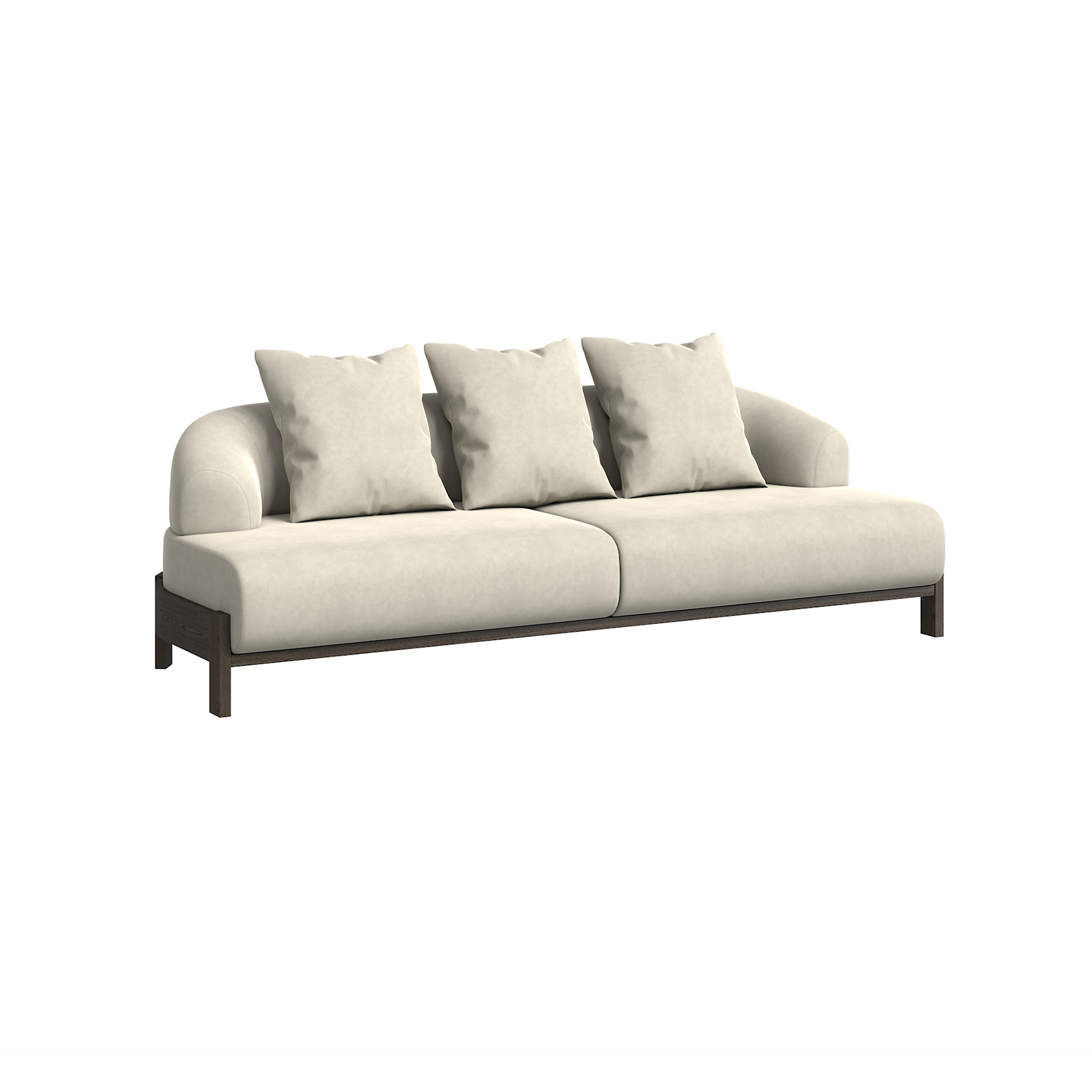 沙發整體為面料包製,框架為白蠟木實木開放漆灰橡色。
