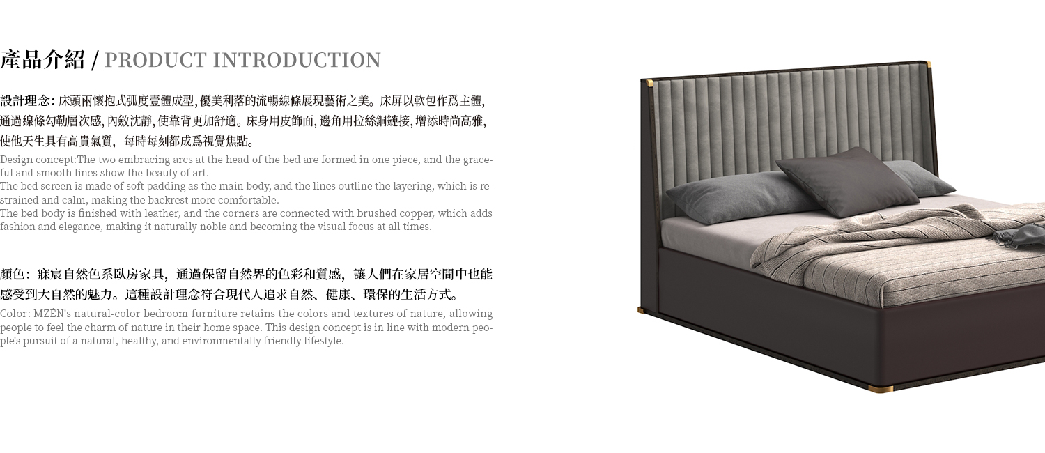 實木框架,床身為布軟包 + 超纖皮 + 白蠟木實木 + 金屬。