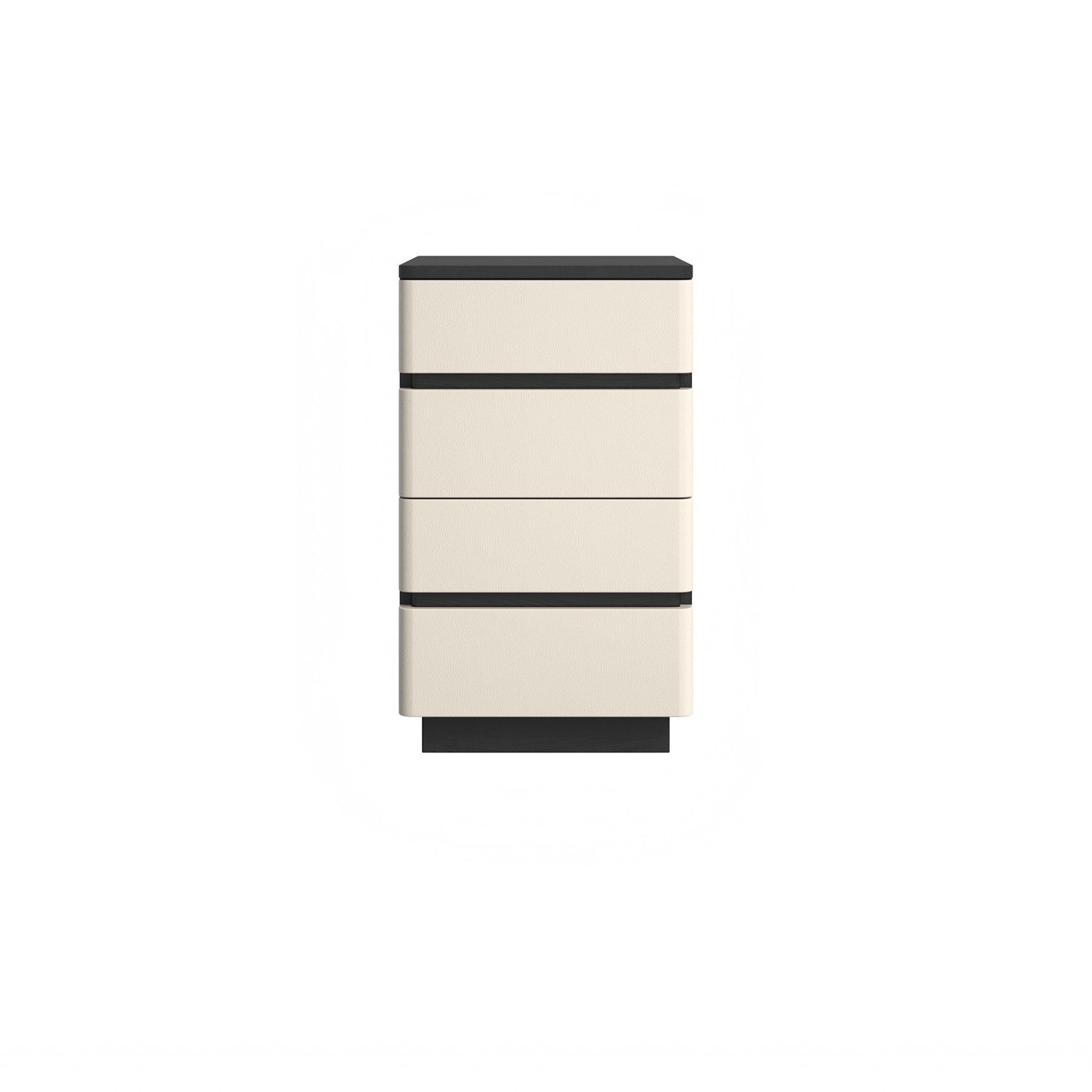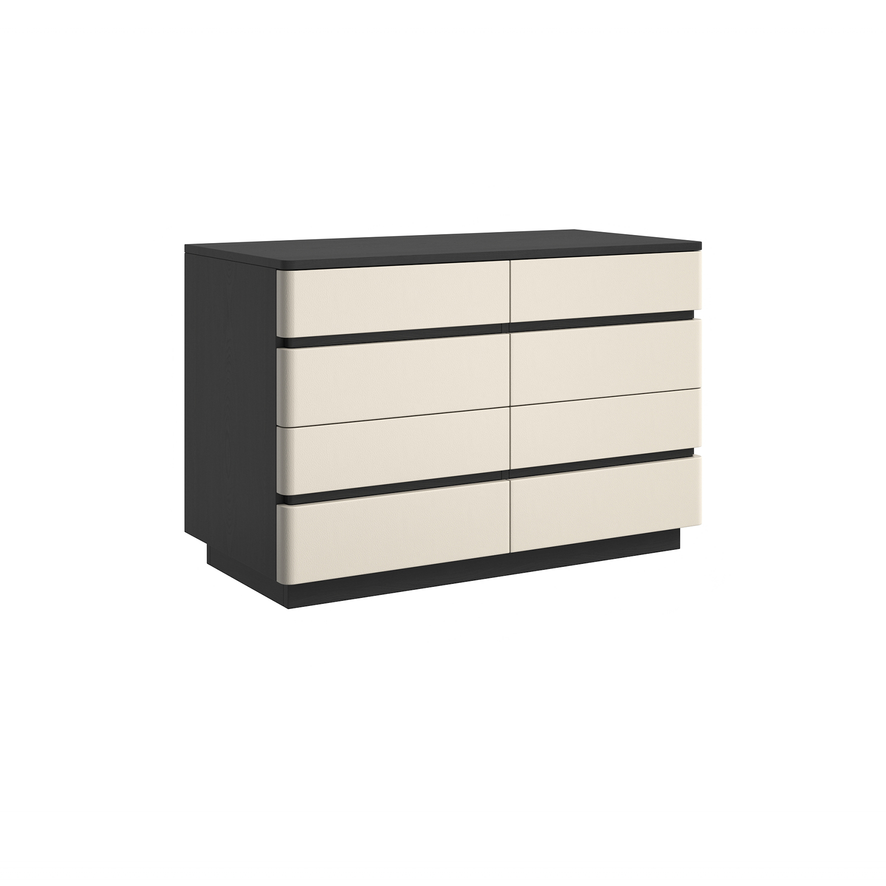 Frame with white oak small mountain grain wood veneerdrawer fronts hard-upholstered with synthetic leather, andsolid wood frame base.