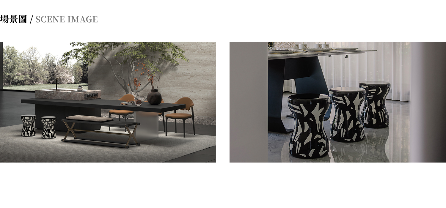 客廳凳整體材質為樺木,木飾面手繪畫實色漆。