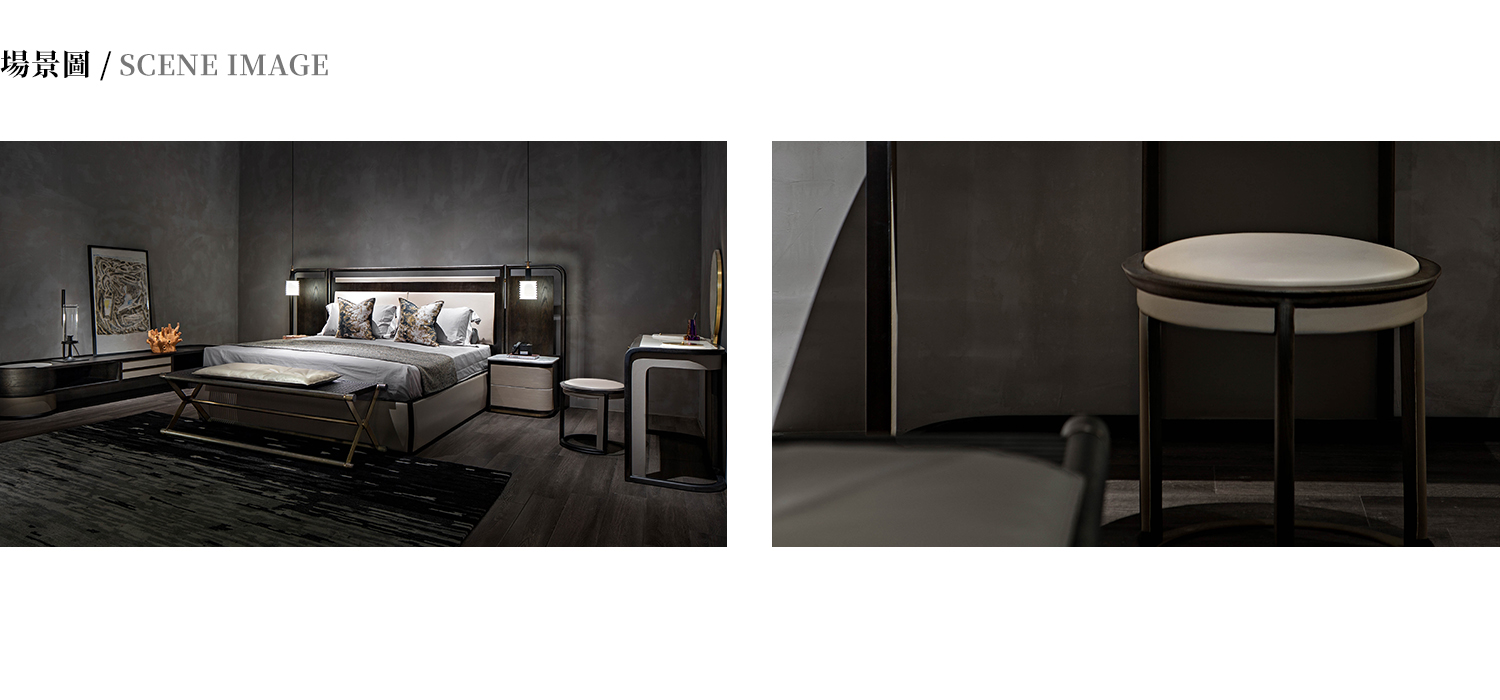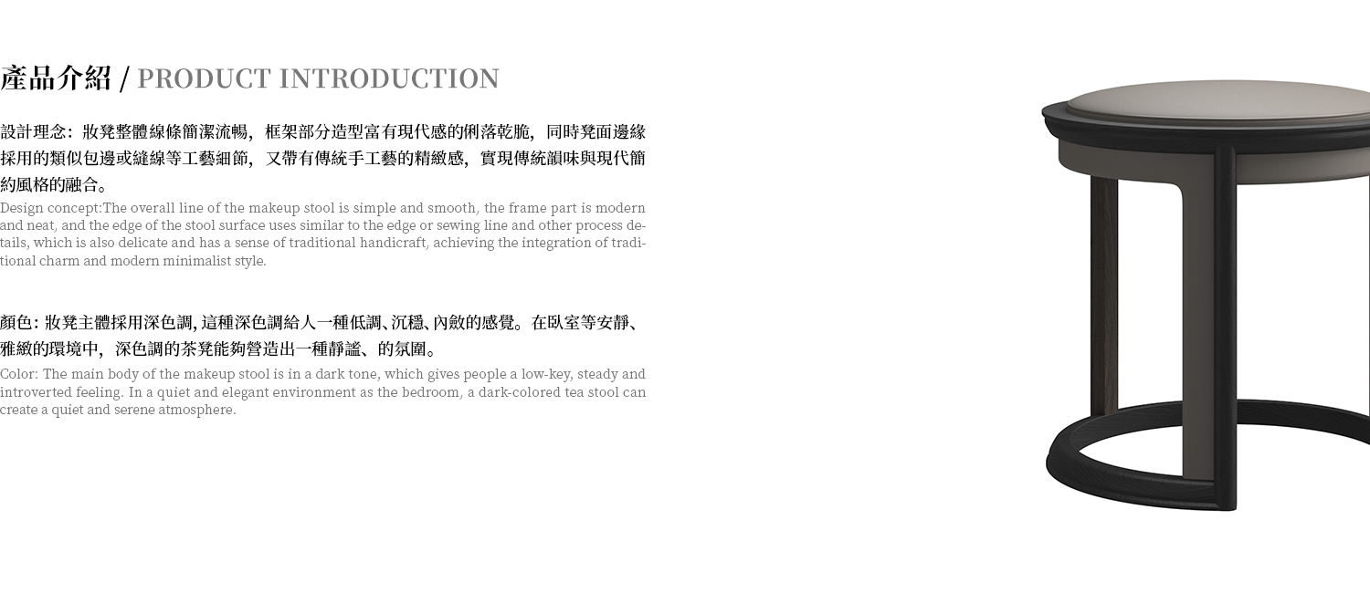 妆凳整体材质为白蜡木,坐包采用皮质包制。