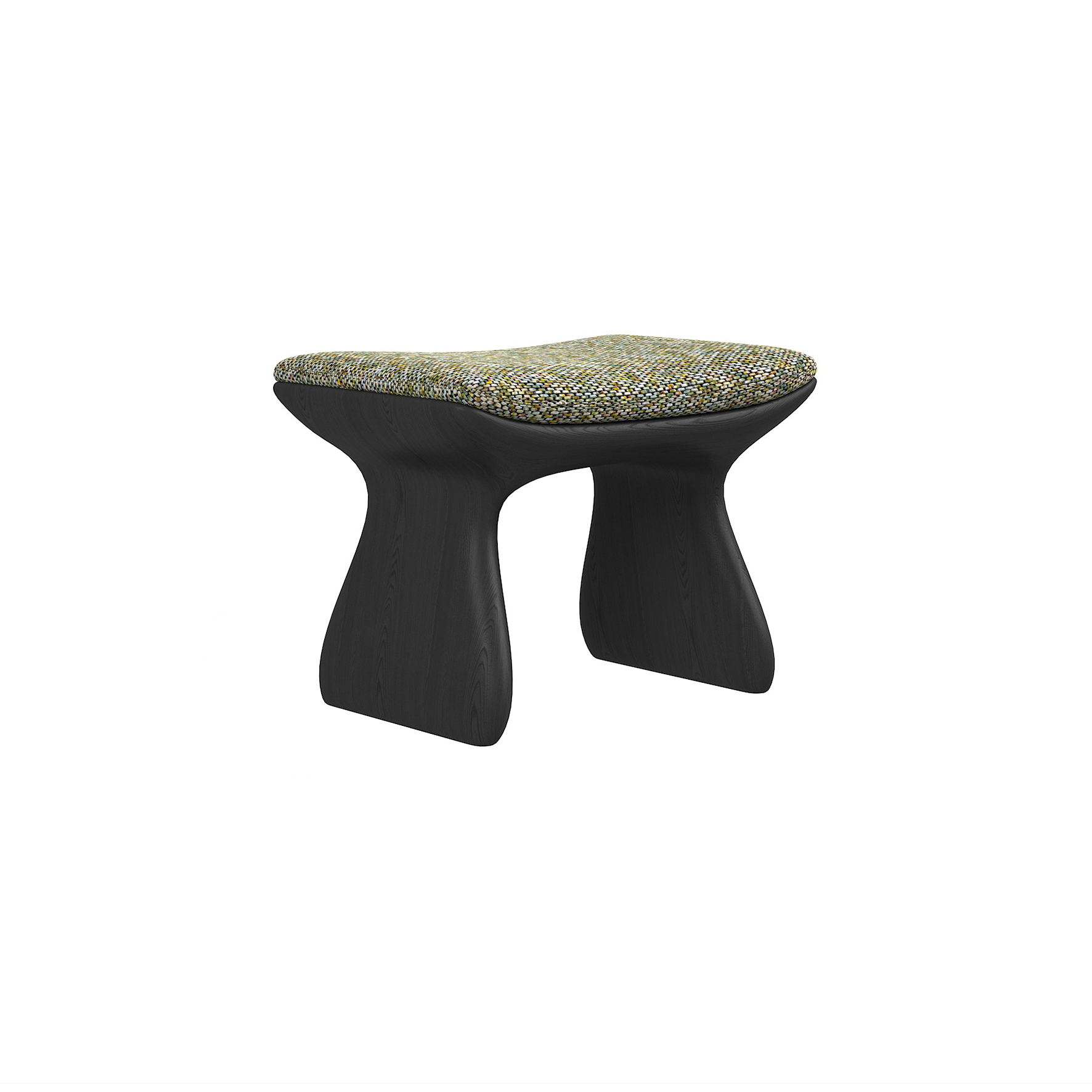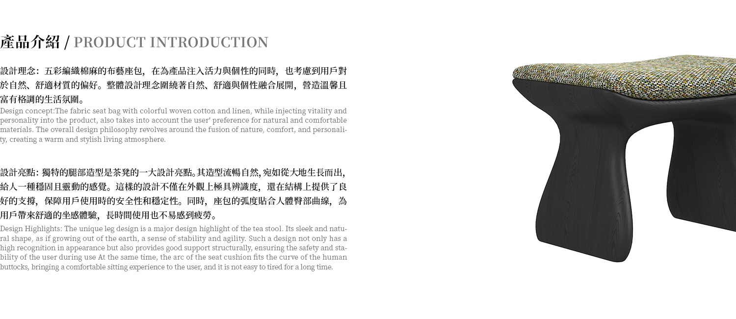 茶凳坐包為面料包制,框架為白橡小山紋木飾面。