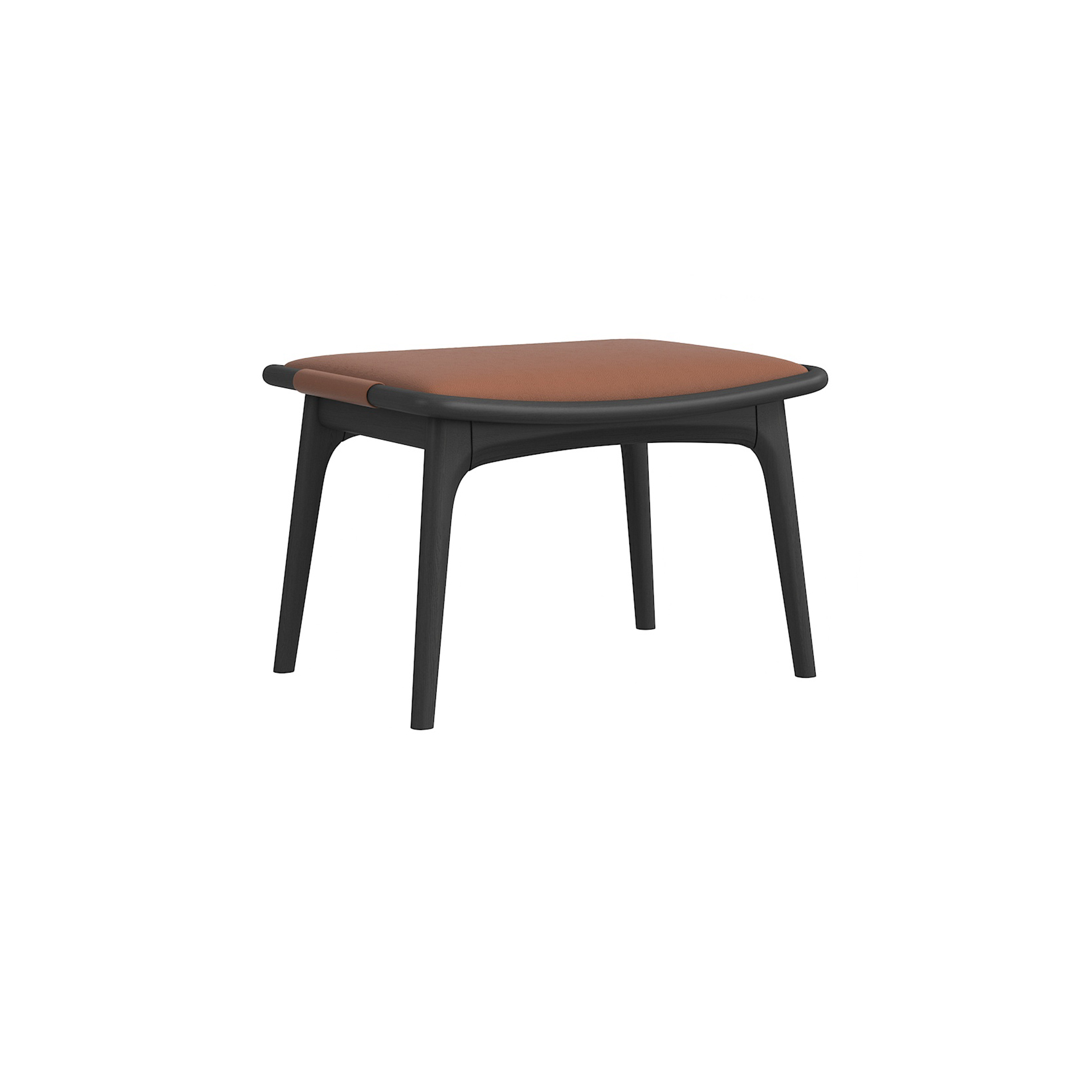 lea stool seat wrap is leather wrapped and framed in whiteoak chaparral veneer.