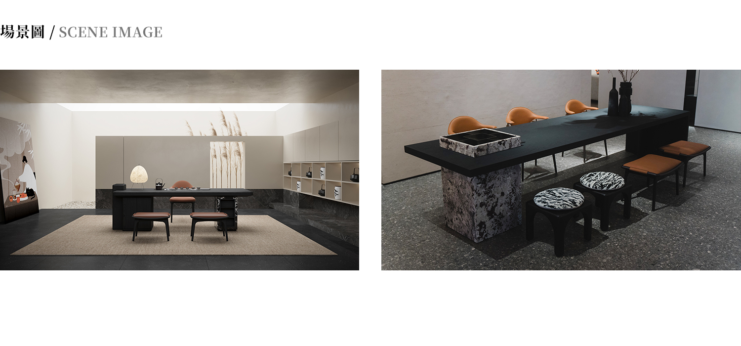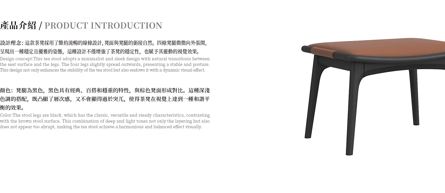 茶凳坐包為皮質包制,框架為白橡小山紋木飾面。