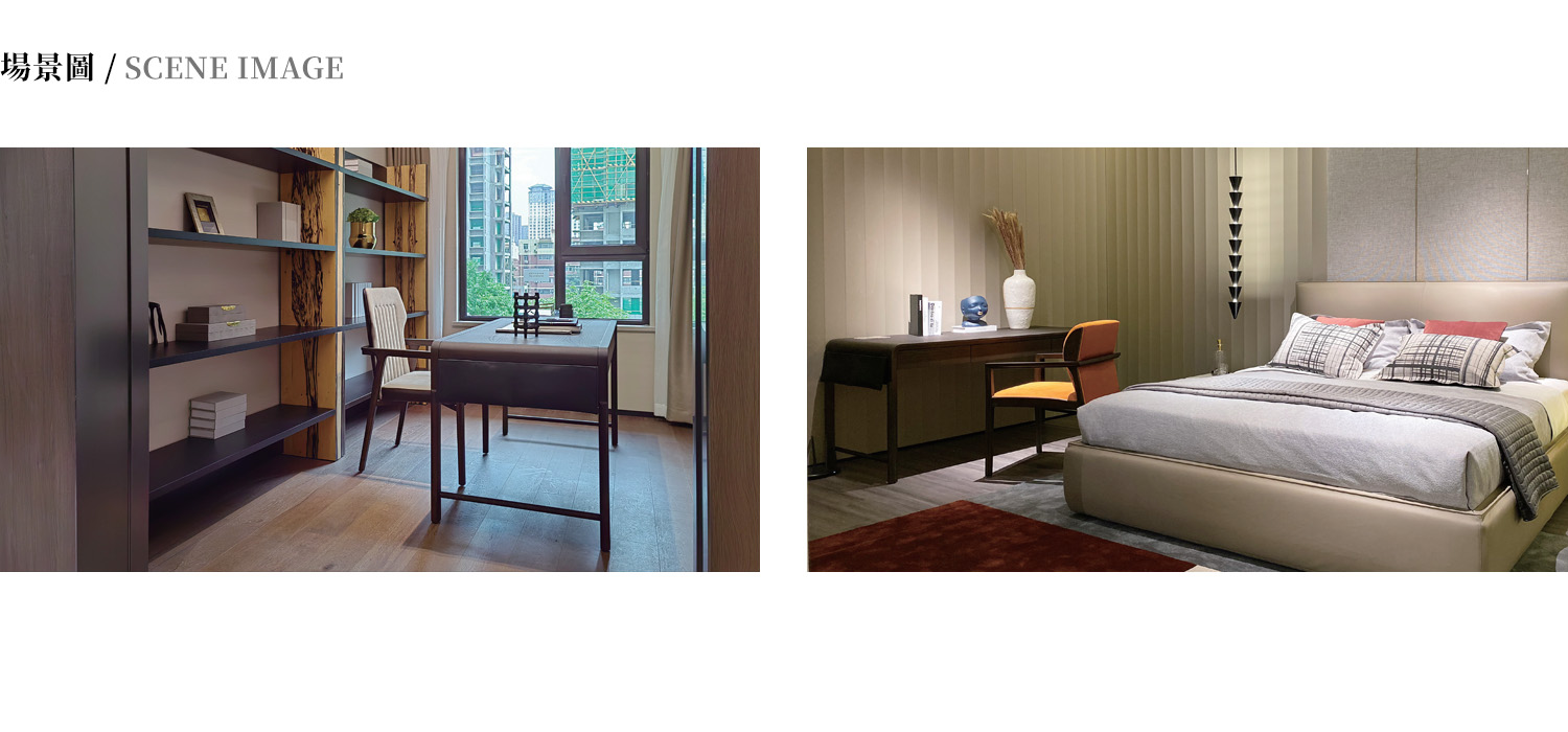 書桌整體框架為白蠟木,抽屜內置意大利隱藏式阻尼路軌,側邊掛袋採用超纖皮材質。