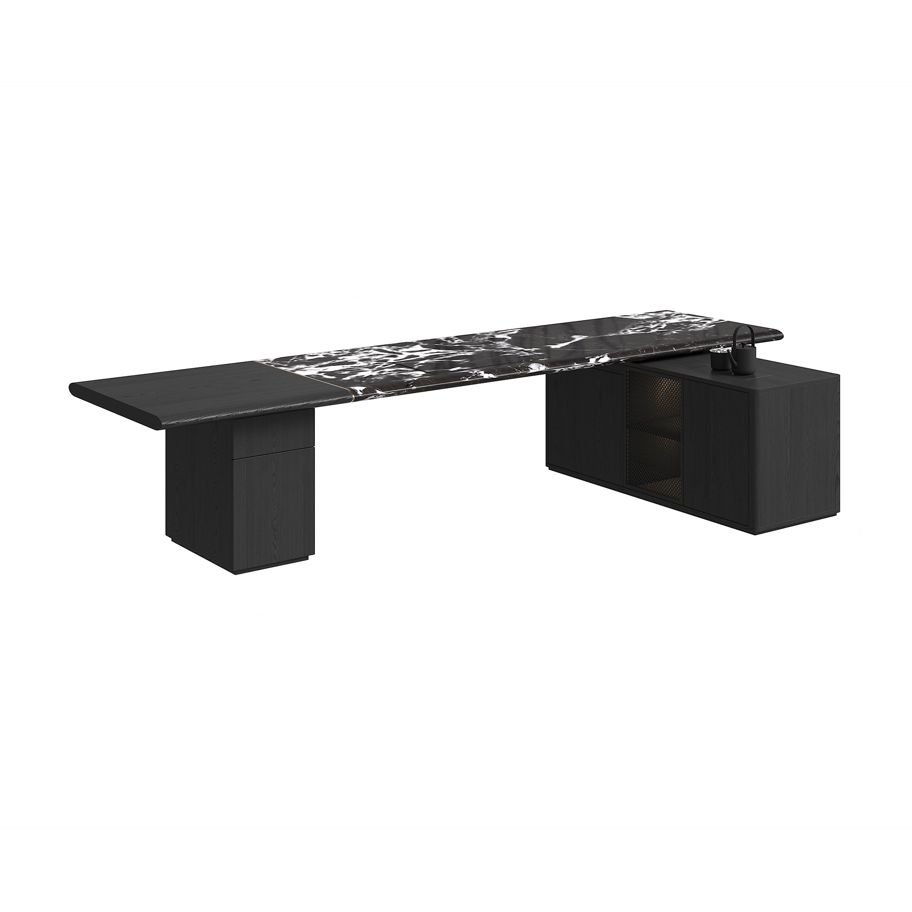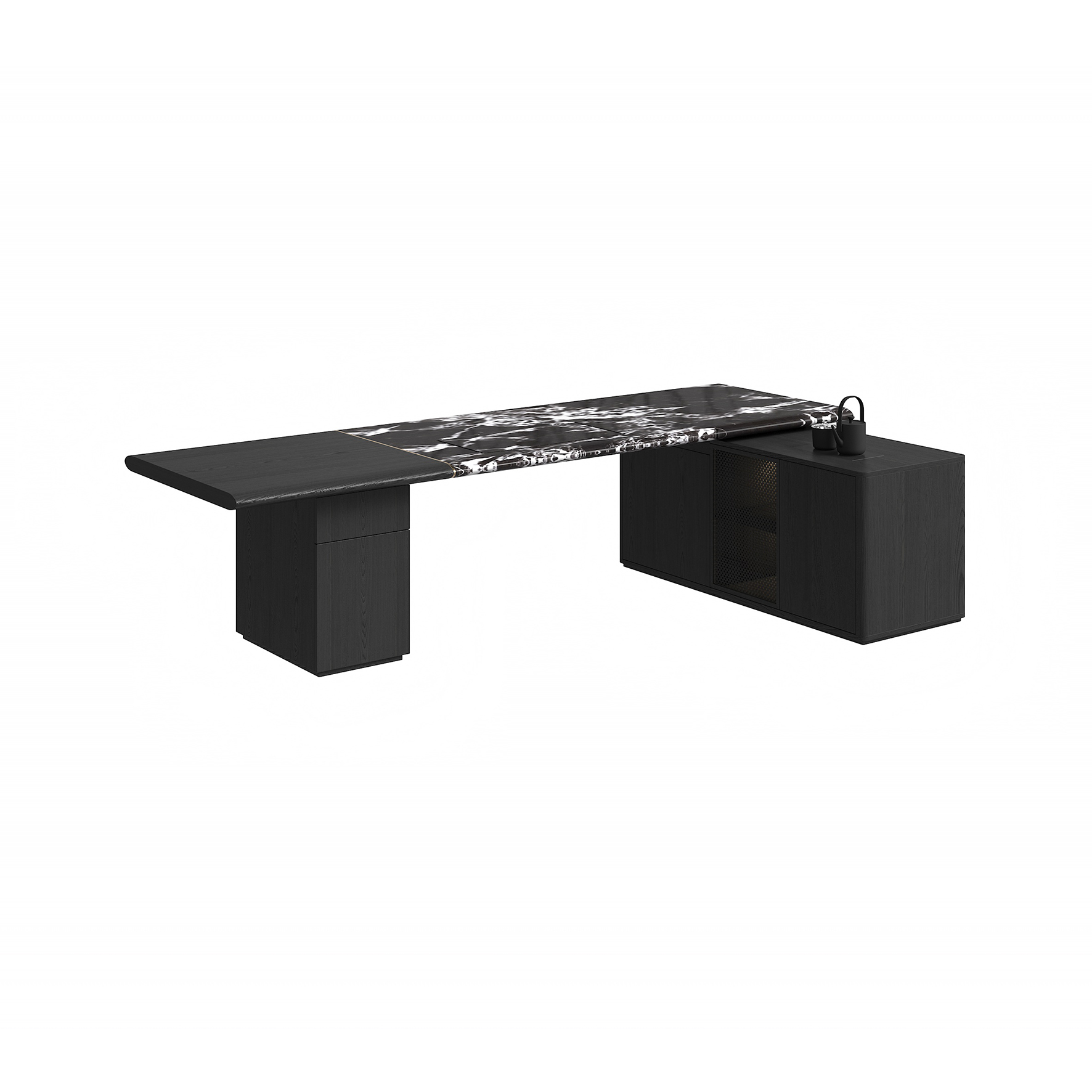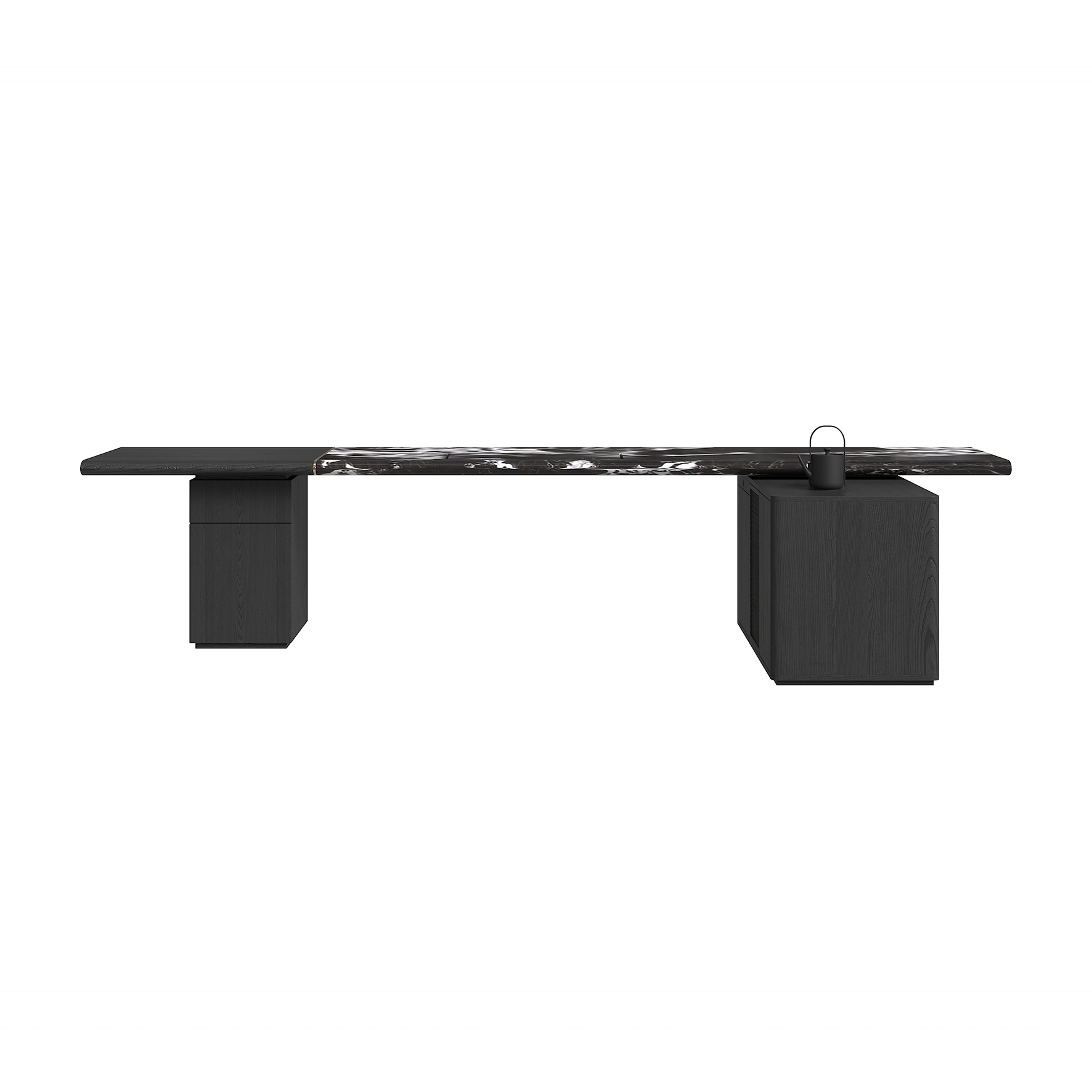 Tea table top Bulgari black marble + induction hob, overallframe in white oak chaparral veneer black oak colour.