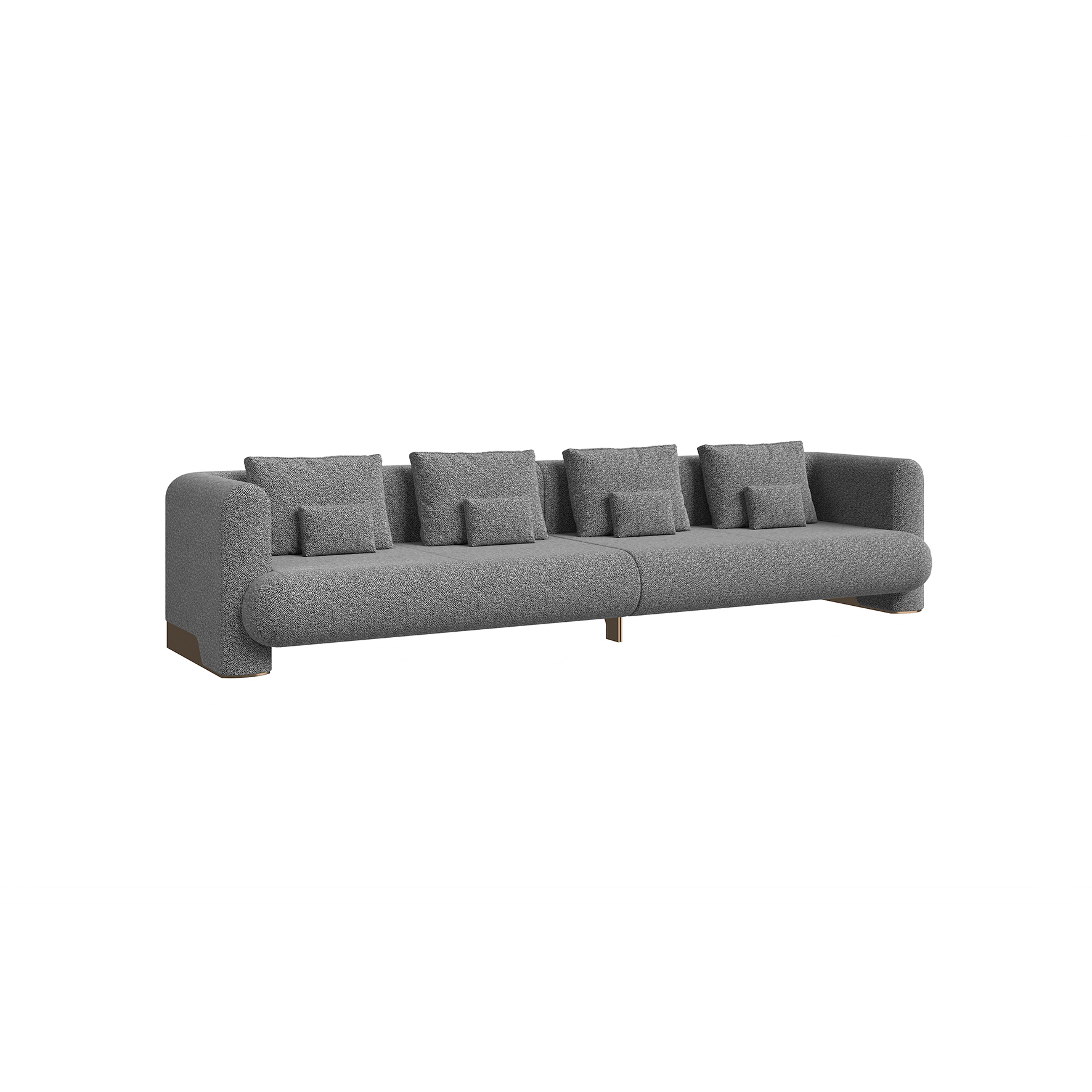 The sofa is leather wrapped throughout, with a solid ash wood open lacquered grey oak frame and 304 brushed stainless steel legs.