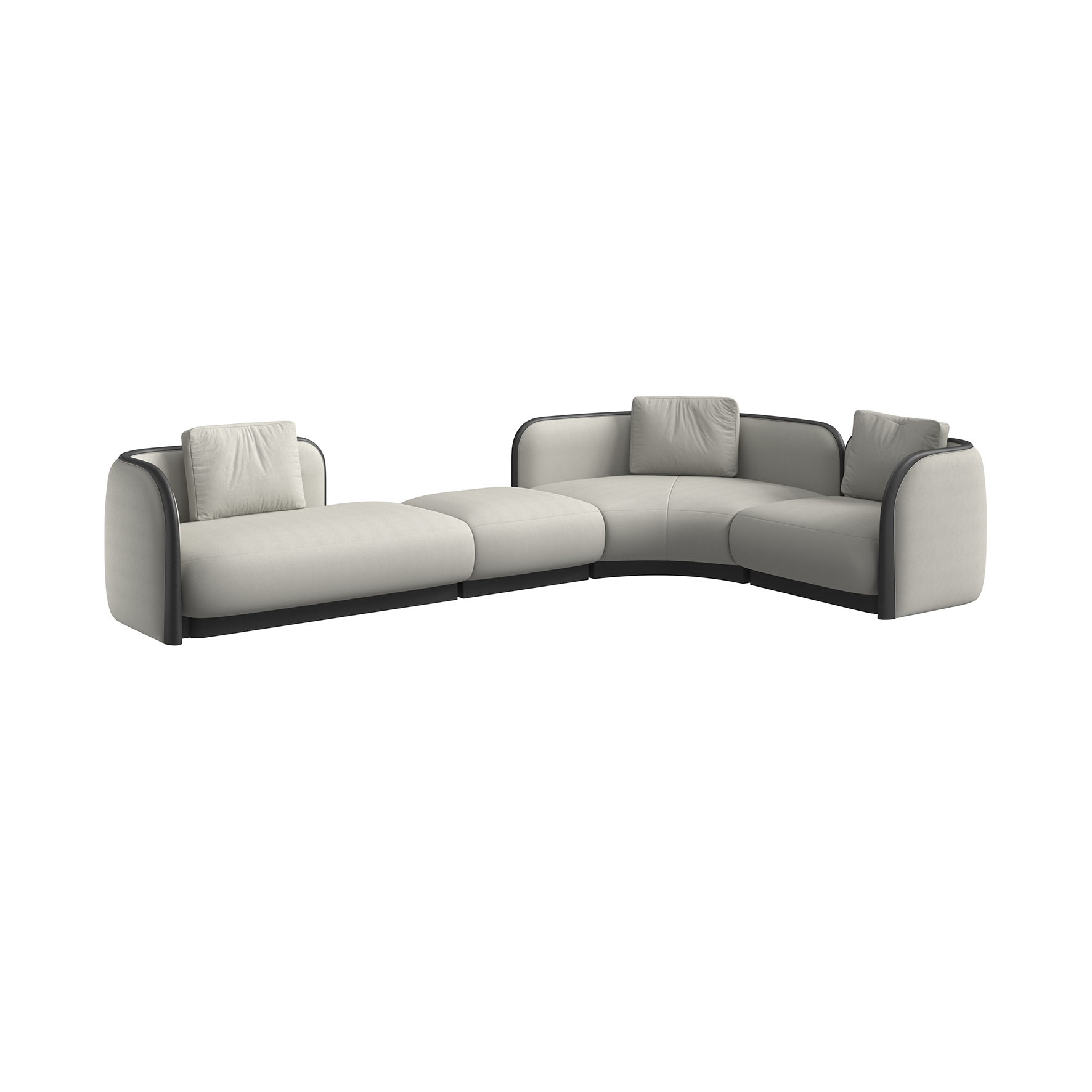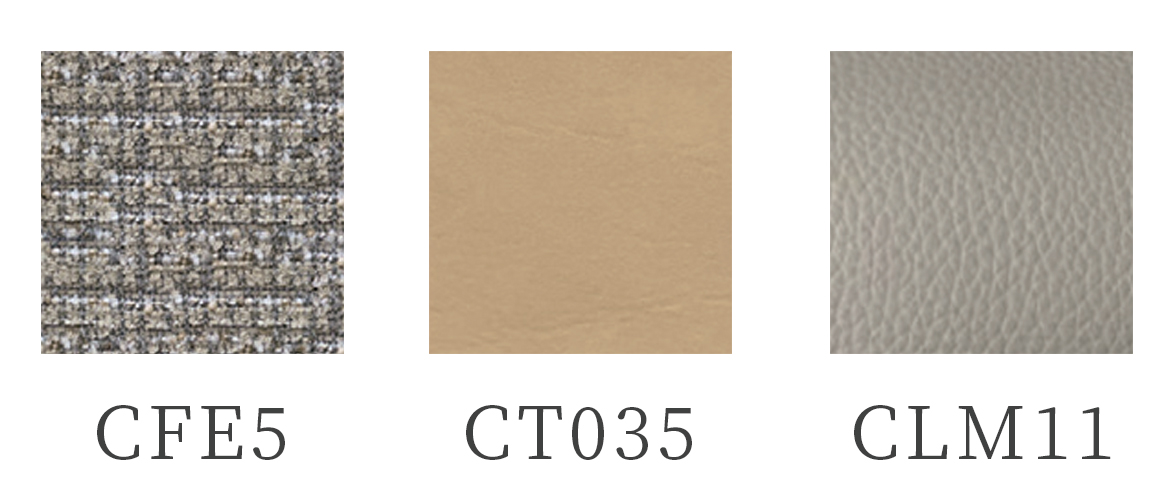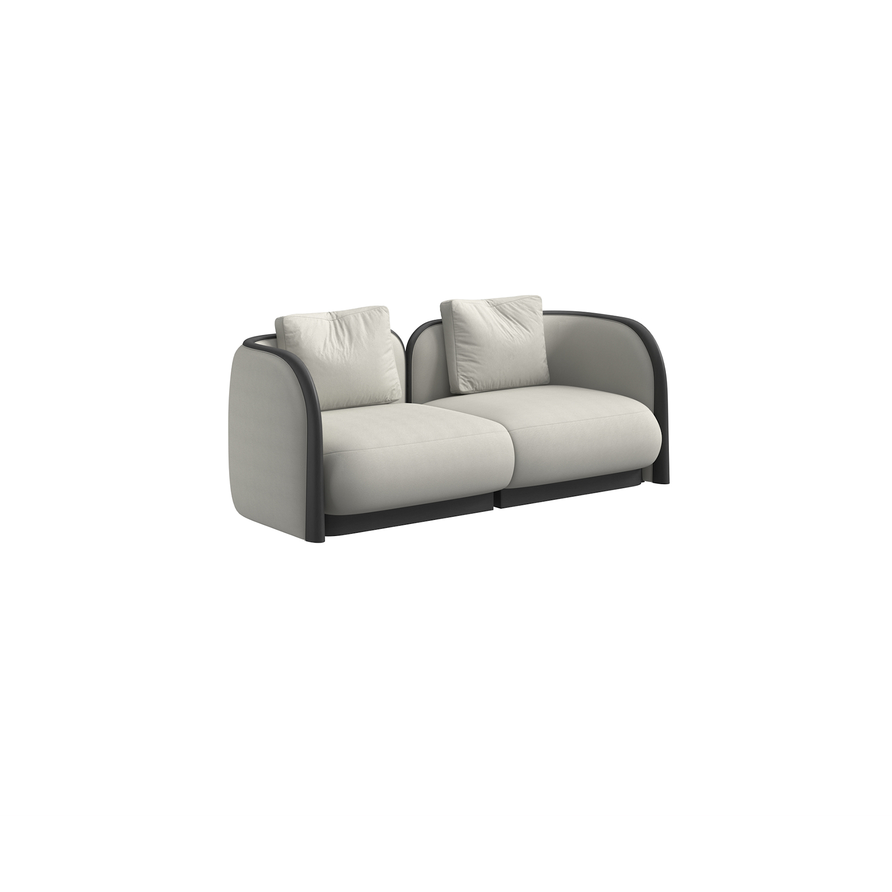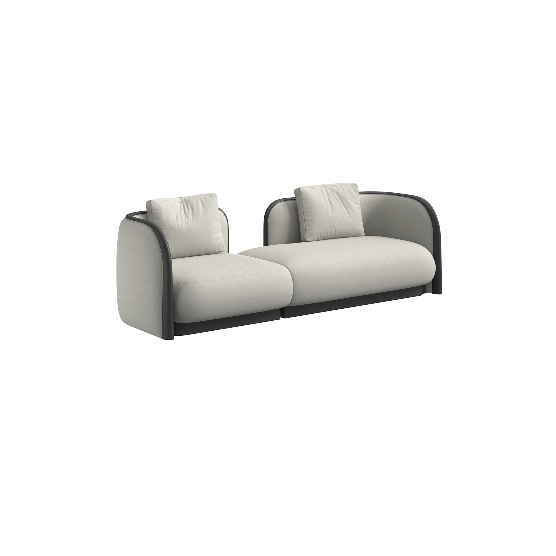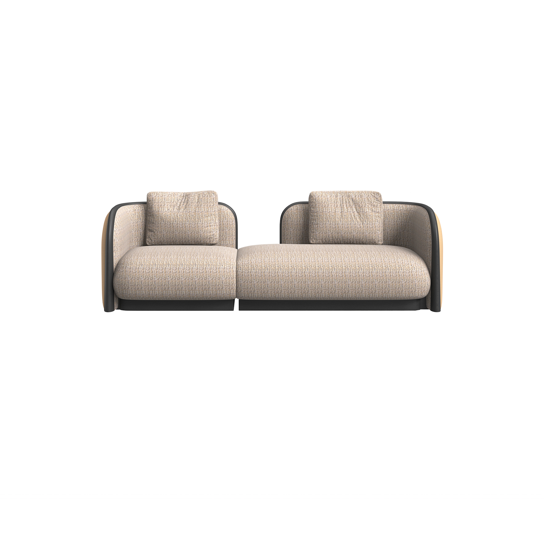 沙發坐包為面料,外圍後背為皮質包製,框架採用白蠟木實木開放漆黑橡色。