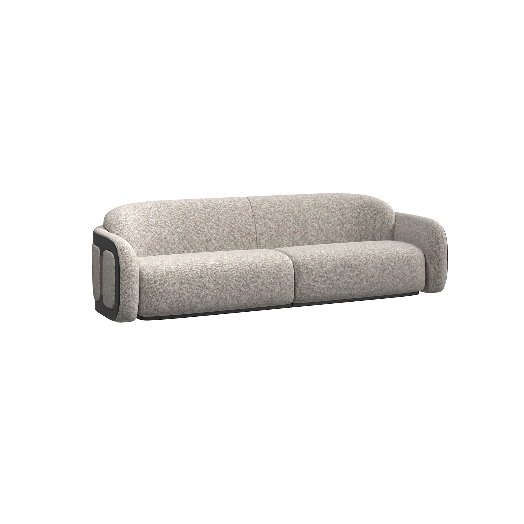 沙發整體為面料包制,框架採用白蠟木實木開放漆黑橡色。
