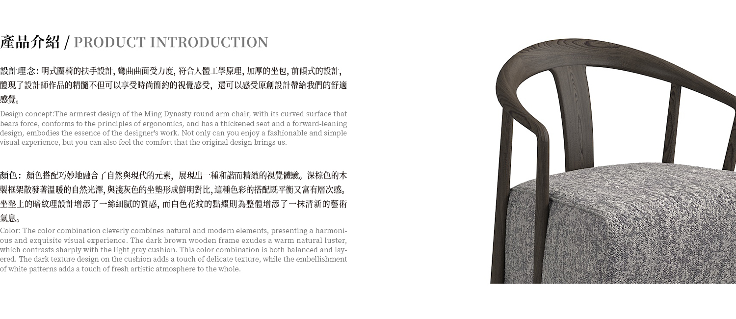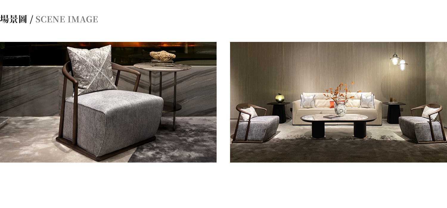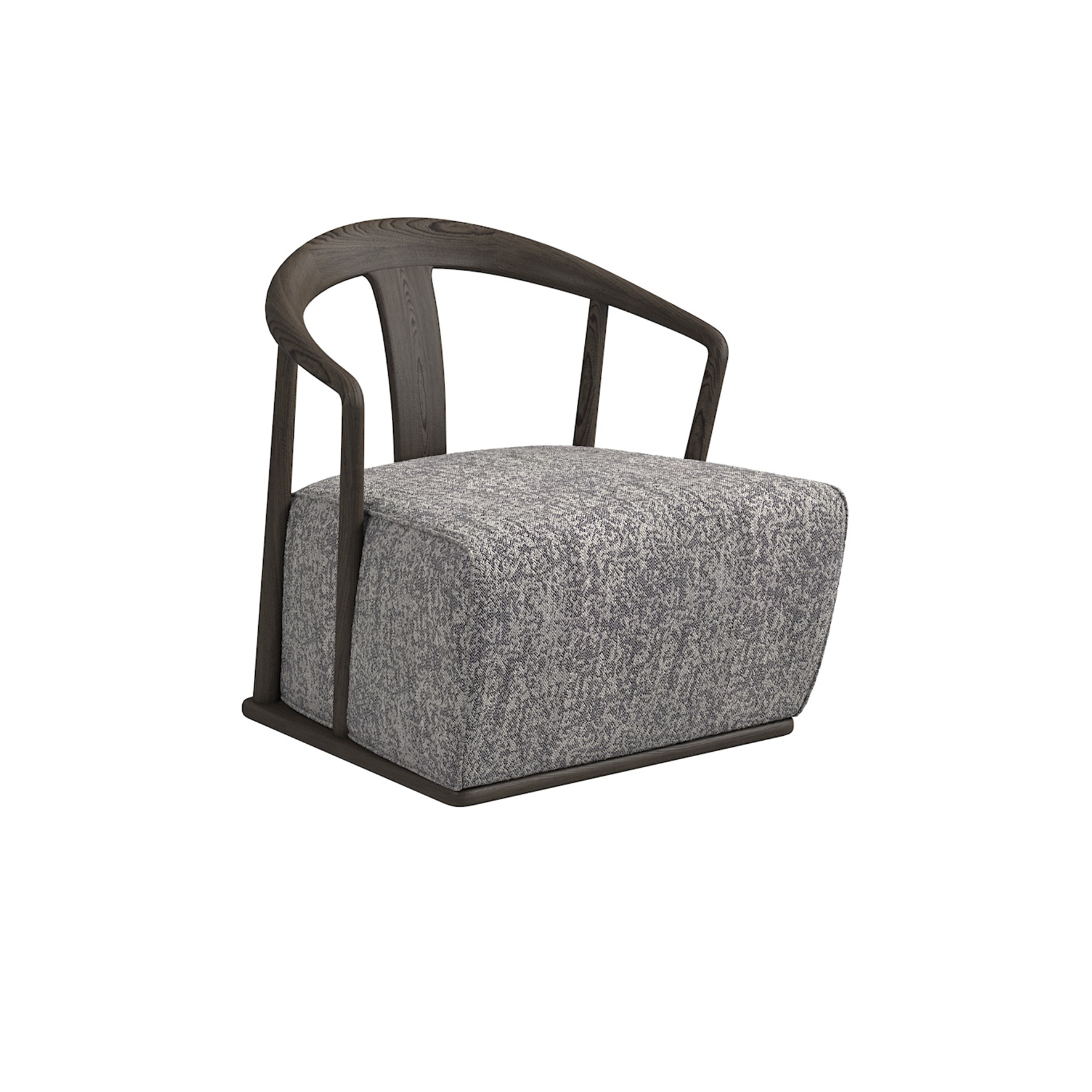 座墊整體為布料包制,底框與椅背為白蠟木實木開放漆。