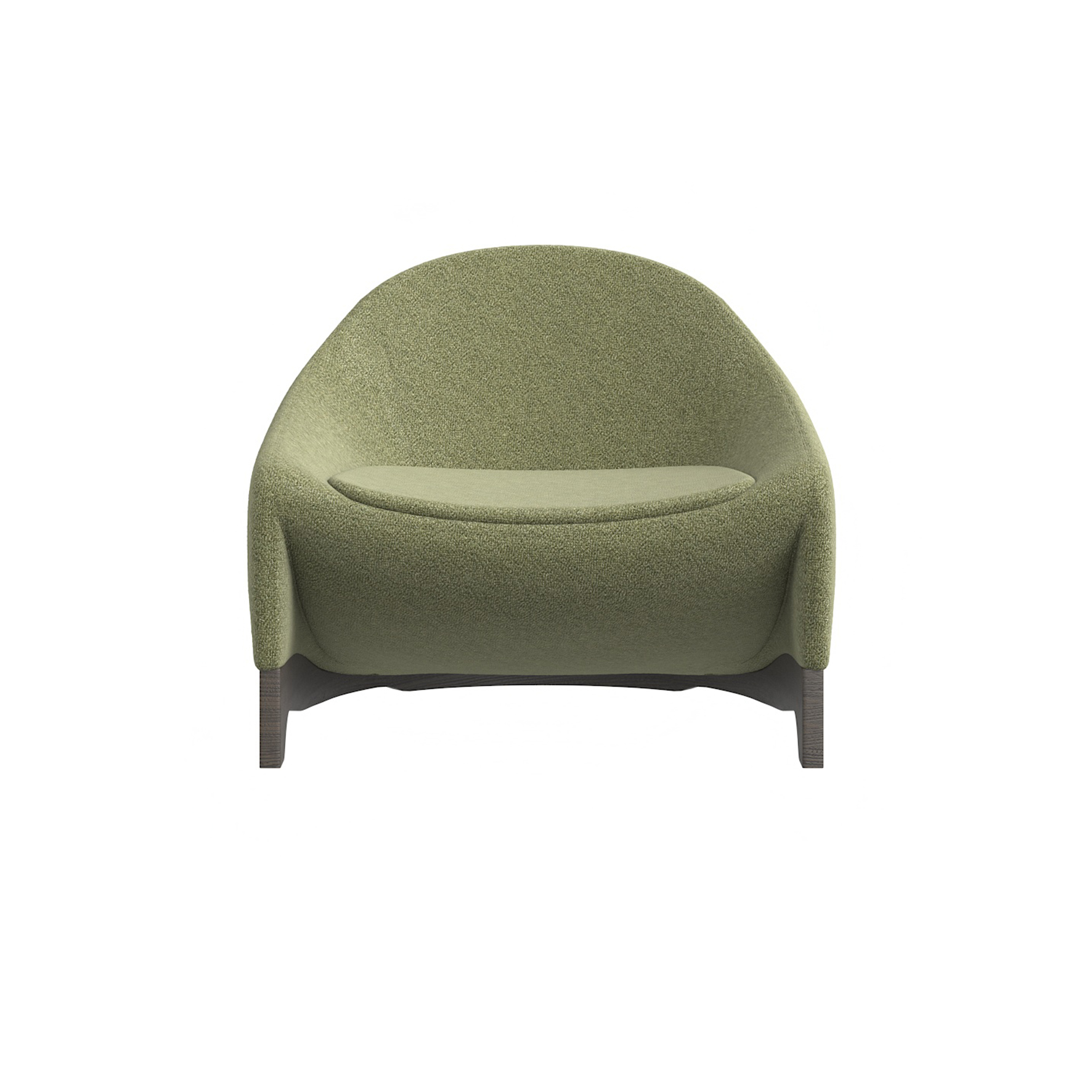 The whole is fabric wrapped and the frame is solid ash wood open lacquered.