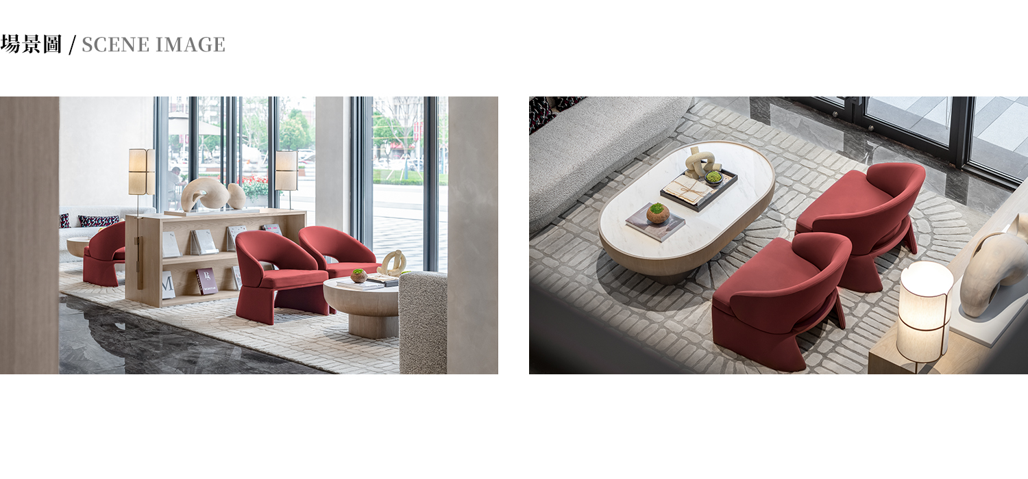 整體為布料包制,框架為 E0 級實木夾板,腳墊採用 304 拉絲不鏽鋼。