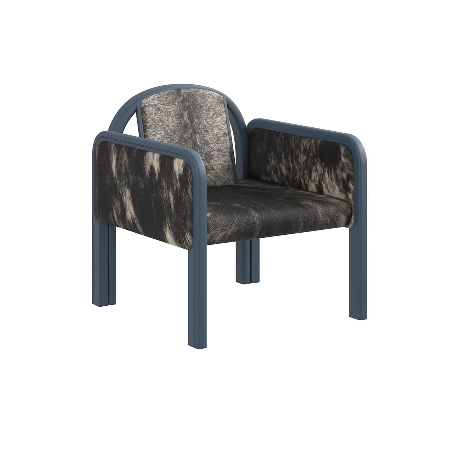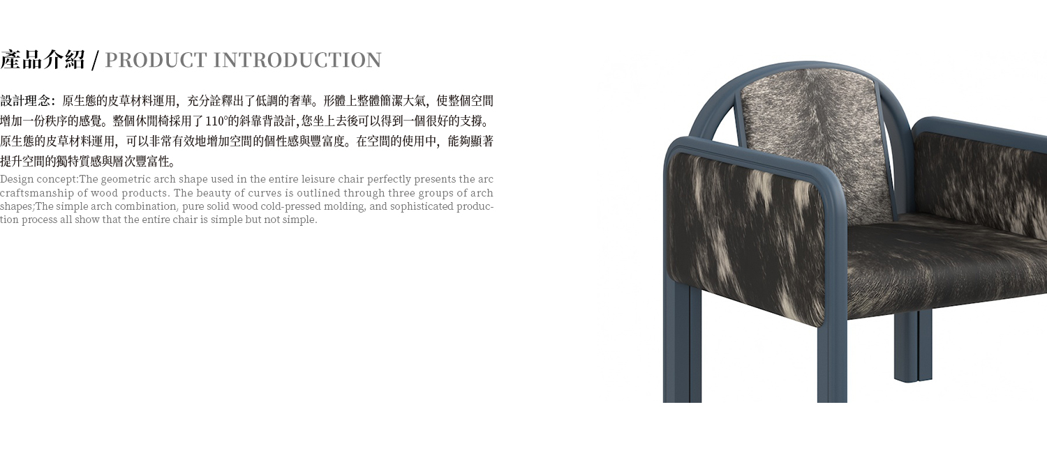 体字 整體為原生牛皮包制,框架為白蠟木實木膚感漆,後腳採用 304 拉絲不鏽鋼支撐。