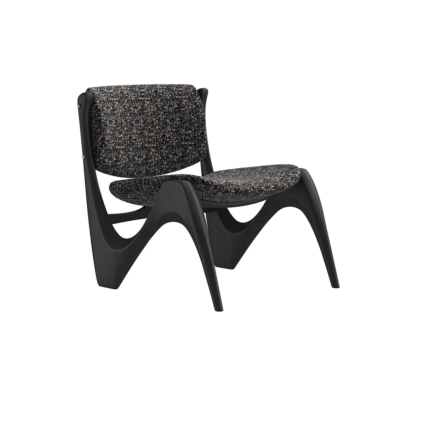 The whole is fabric wrapped and the frame is solid ash wood open lacquered.
