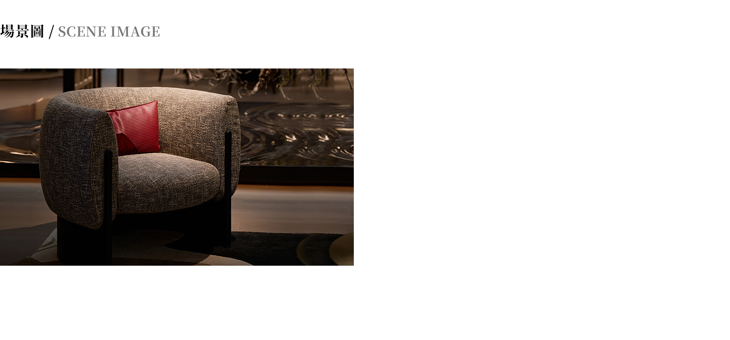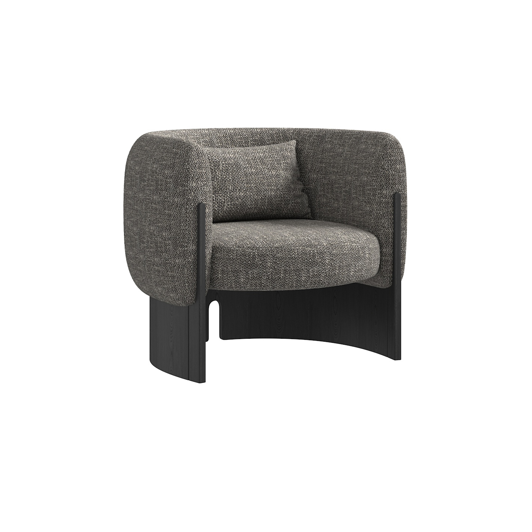 整體為布料包制,進口松木內基架、白蠟木底座,黑橡木飾面開放漆。