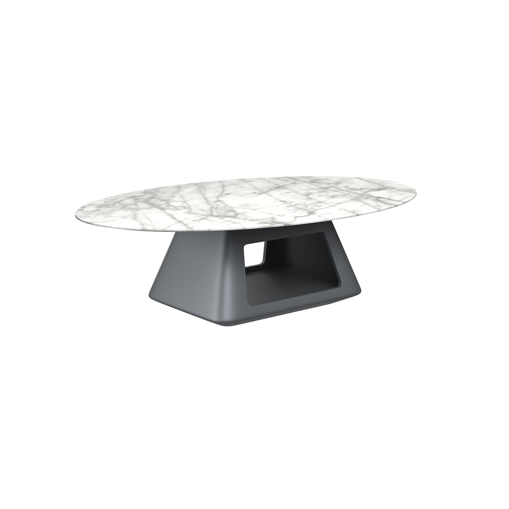 Coffee table top in snowflake white marble, frame in ash wood solid wood open lacquer, metal feet.