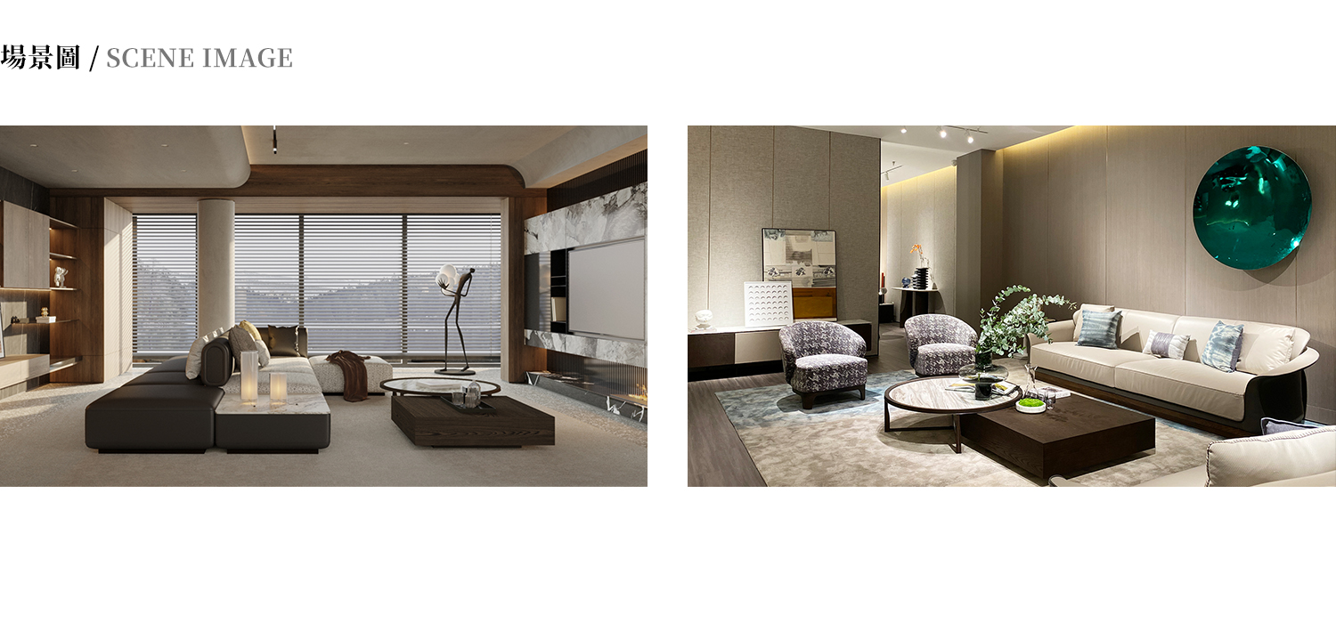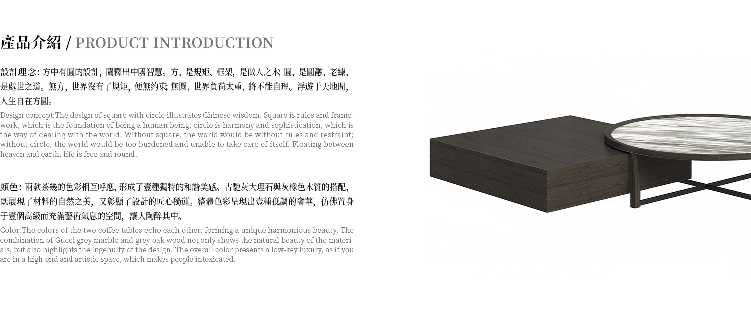 組合茶几圓桌面為古馳灰大理石,方桌面為開放漆灰橡色,抽屜內置意大利隱藏式退彈路軌。
