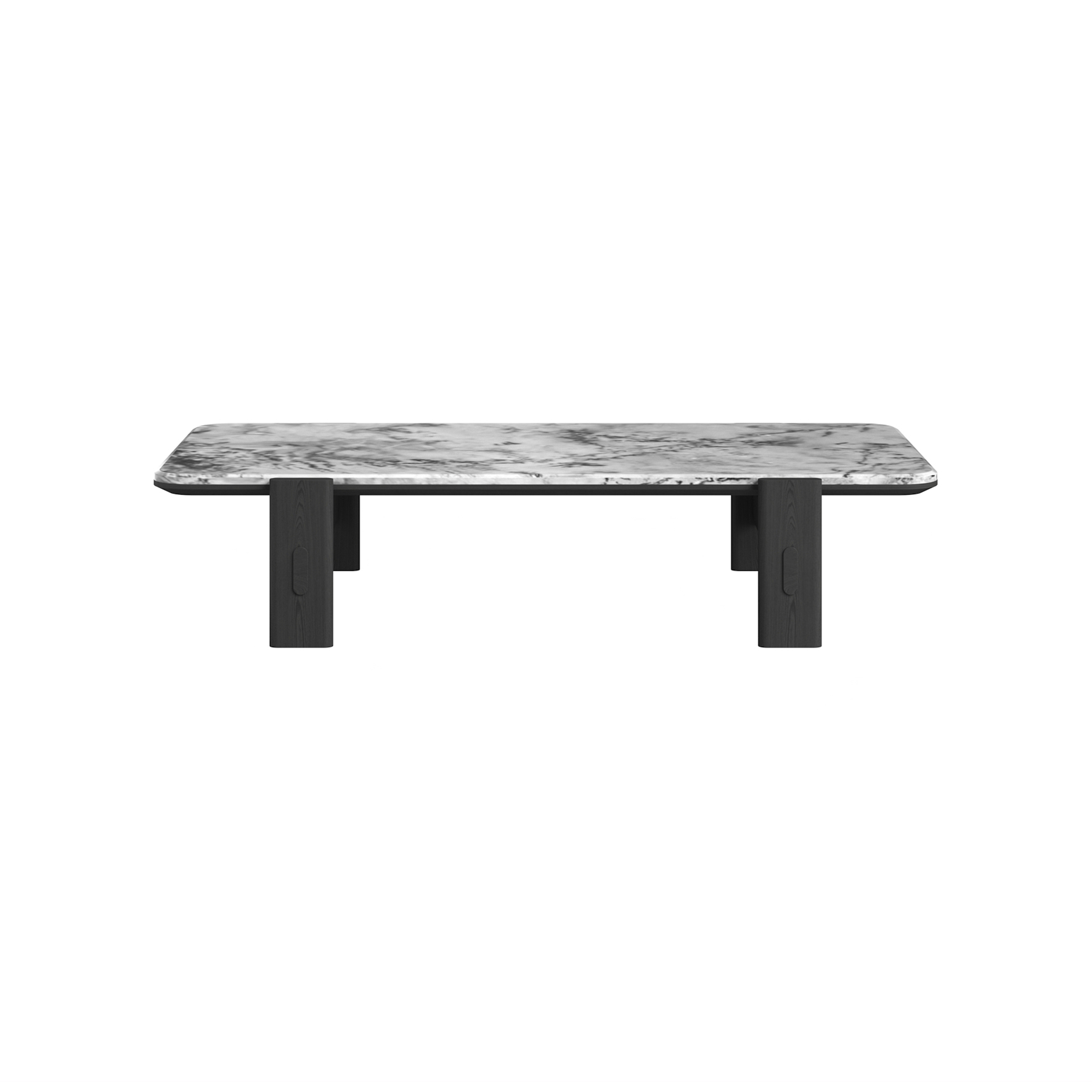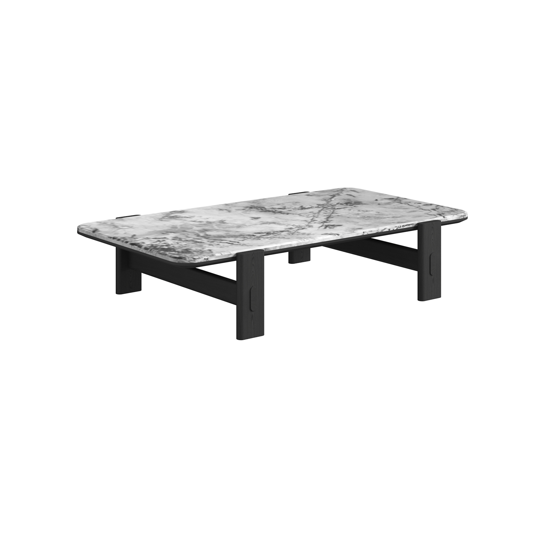 The combination coffee table table top is Shanshan Snow-berry marble and the frame is overall ash solid wood open lacquered black oak.