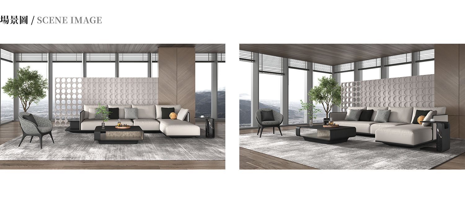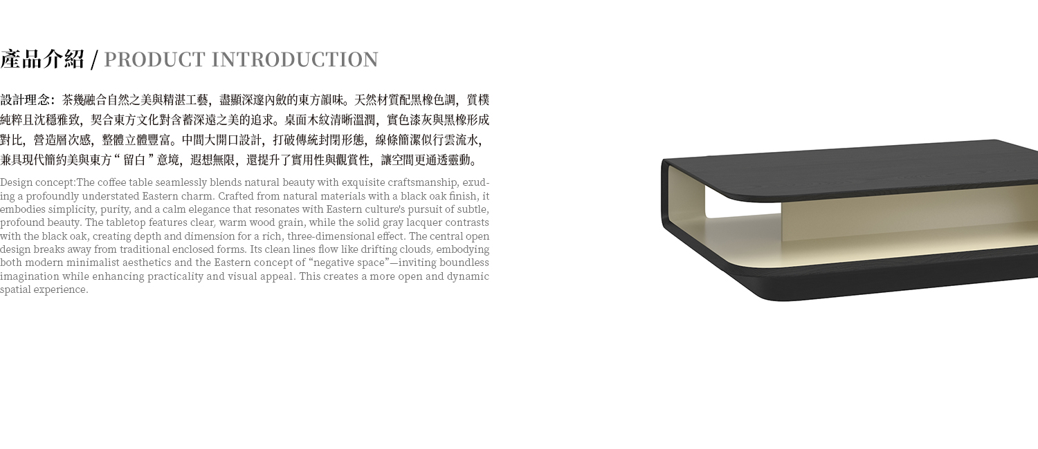 茶几整體為 E0 級實木多層板黑橡色開放漆,收納層架採用超纖皮包制。