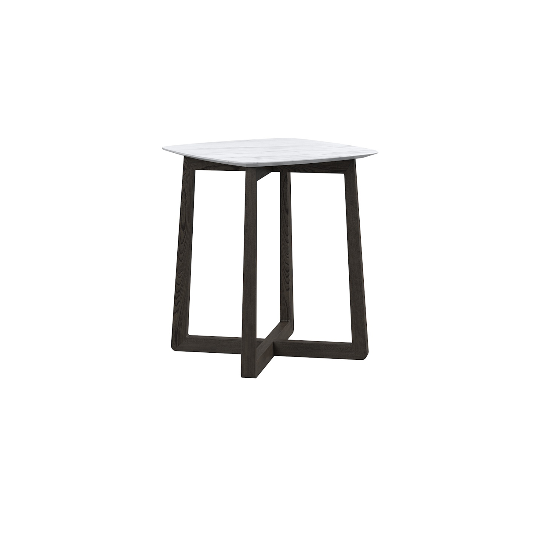 邊几檯面為雪花白大理石,整體腳架為白蠟木實木開放漆灰橡色。