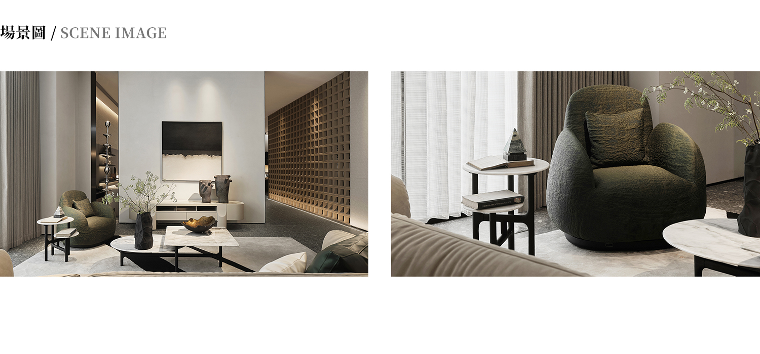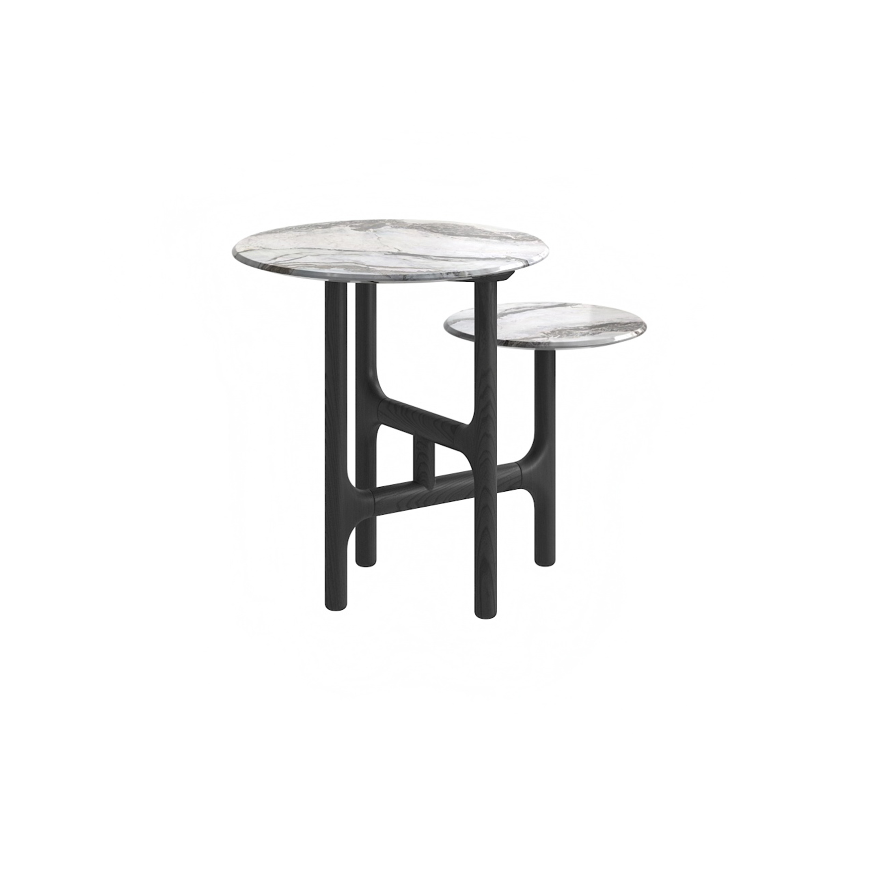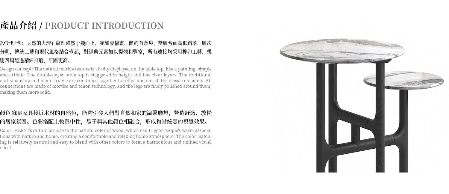 邊几檯面為錫耶納白大理石,整體底架為白蠟木實木開放漆黑橡色。