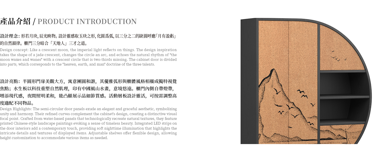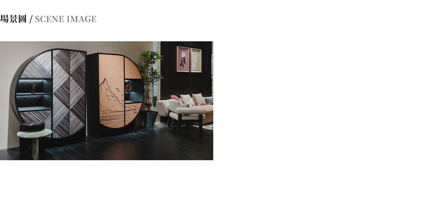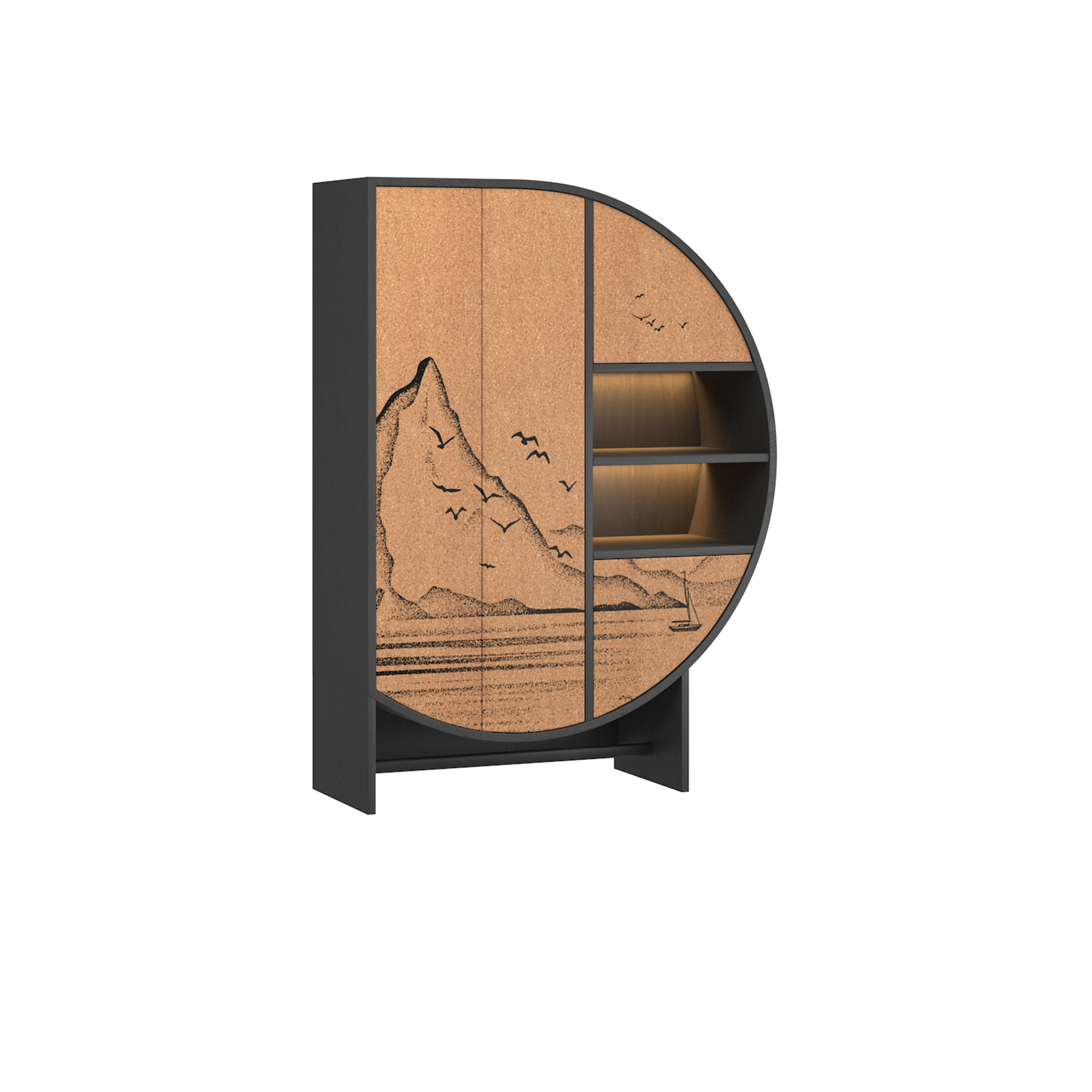 多功能櫃框架為白蠟木,白橡小山紋木飾面,門板軟木定制畫。