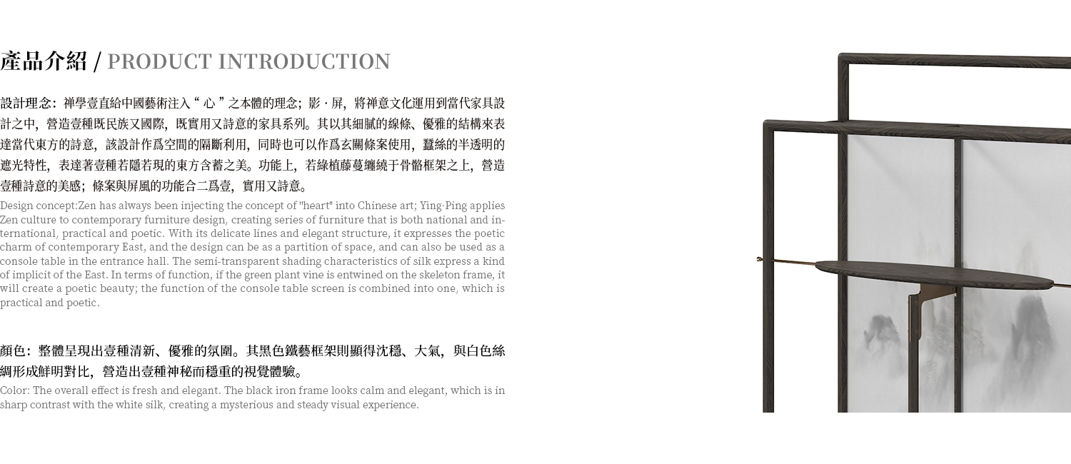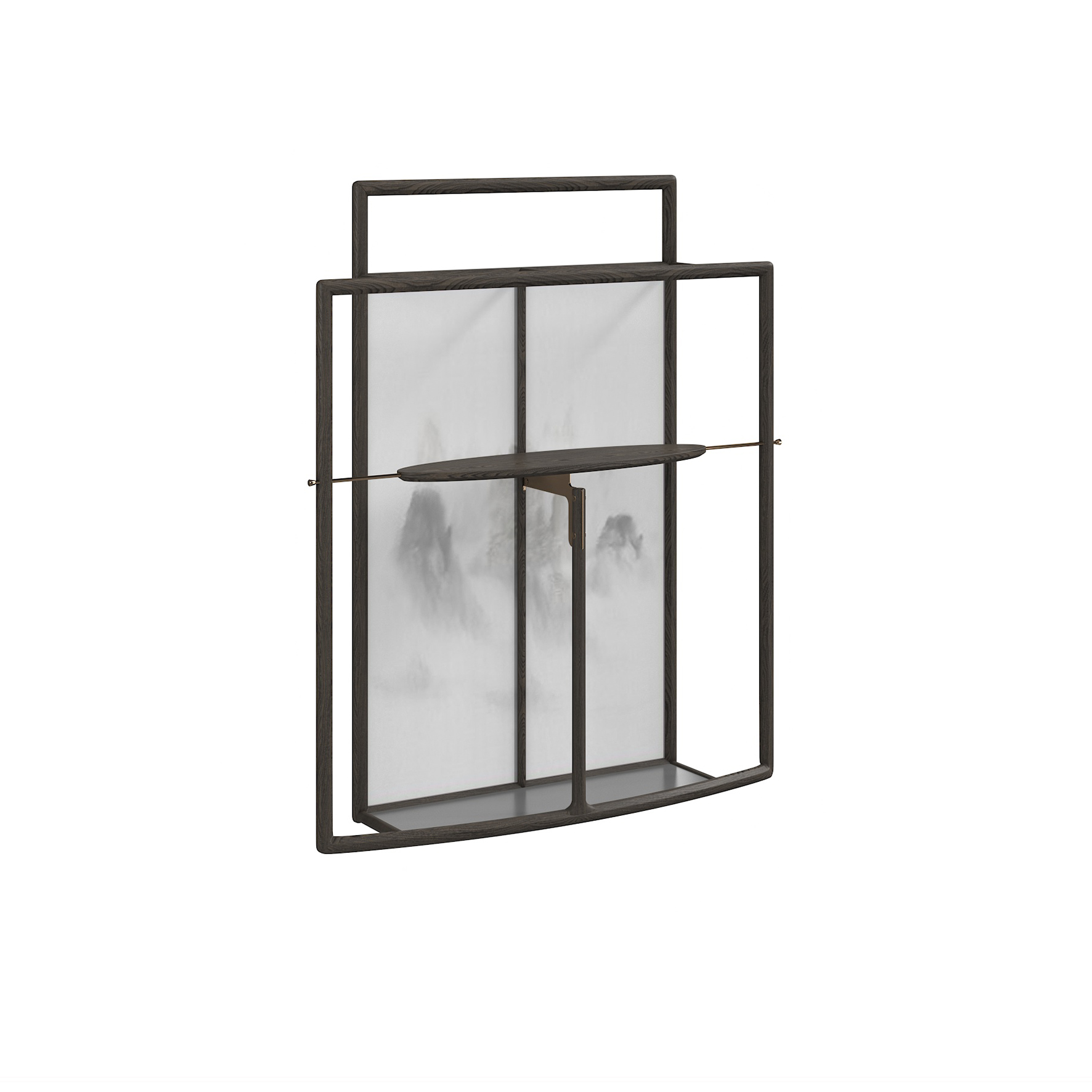 屏風,整體為白蠟木實木開放漆灰橡色,絲布畫。