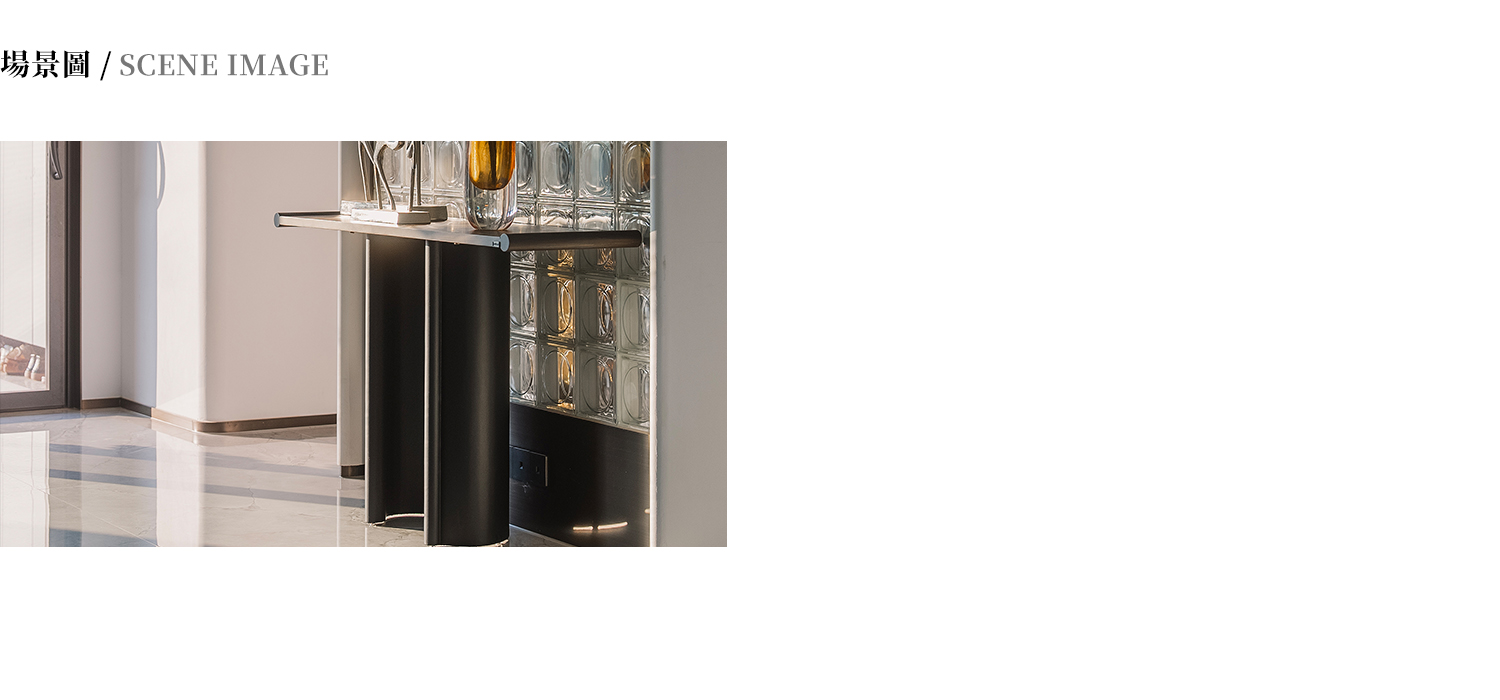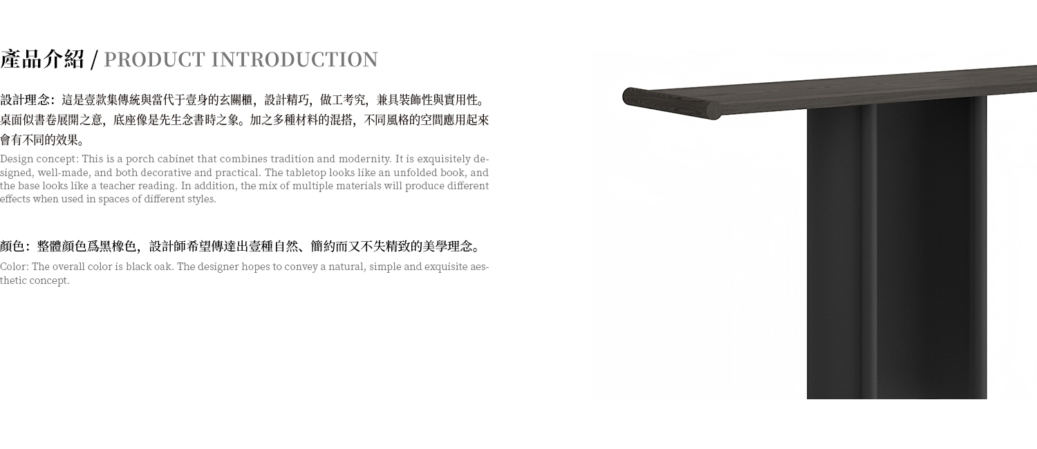 玄關,整體為白蠟木實木開放漆灰橡色,腿部為超纖皮包制。