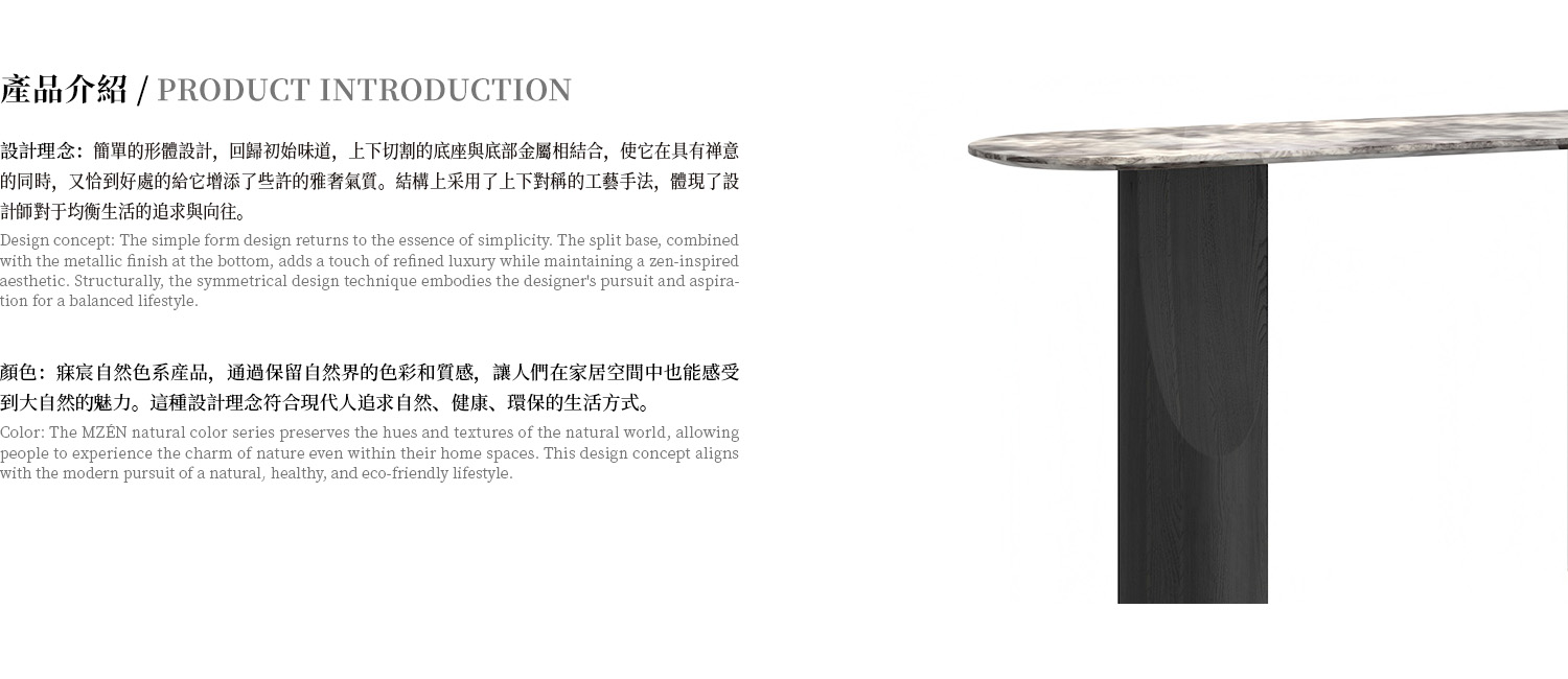玄關檯面為爵士白大理石,腿部為白蠟木實木開放漆黑橡色,腳墊採用 304 拉絲不鏽鋼。